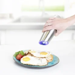 Iedereen wil zijn stukje biefstuk of zalm anders gekruid hebben. De een houd van lekker gekruid eten, en de ander houd meer van de pure en natuurlijke smaak. Zet deze Bestron peper- en zout molen op tafel, zodat iedereen zelf de hoeveelheid kruiden kiest. Met het handige Led-licht zie je precies de hoeveelheid die uit de molen komt. Let er wel op dat je er batterijen instopt, want deze elektrische molen werkt op 6 AAA-batterijen. Deze zijn niet inbegrepen, dus zorg voor de juiste batterijen voordat je je gerechten gaat kruiden.