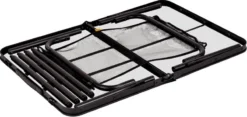 Deze campingtafel is compact mee te nemen dankzij de inklapbare, maar ook afneembare poten. De poten zijn gemaakt van lichtgewicht aluminium, waardoor de gehele tafel maar 4,76 kg weegt. De tafel is voorzien van een MDF tafelblad, wat de tafel niet hitte- en vochtbestendig maakt. Ga je op een prachtige rondreis door Europa of bespaar je graag ruimte in je auto of caravan? Het blad is dubbel te vouwen waardoor deze tafel zich opvouwt tot handige koffer om mee te nemen.