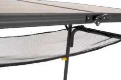 Onder dit blad bevindt zich een extra net om spullen in op te bergen. Hier berg je heel eenvoudig spullen in op, waardoor niets meer rond hoeft te slingeren op je campingplaats. Ruim jij jouw spullen liever ergens anders op en vind je het opbergnet overbodig? Je haalt hem eenvoudig onder de tafel vandaan. Met de Bo-Camp Industrial Koffermodel campingtafel geniet je comfortabel en in stijl van heerlijke maaltijden tijdens jouw vakantie!