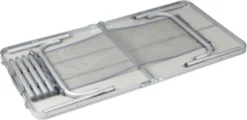 Deze campingtafel is compact mee te nemen dankzij de opvouwbare poten en het inklapbare tafelblad. Je vouwt het blad eenvoudig dubbel, waardoor de tafel zich opvouwt tot een handige koffer. Het frame en het tafelblad zijn gemaakt van aluminium. Het tafelblad is daarbij water- en hittebestendig. De tafel weegt in totaal 7 kilo.