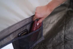 Na een goede nacht slapen met 6 personen in 1 ruimte wil je natuurlijk niet wakker worden in een muffe tent. Daarvoor is goede ventilatie essentieel. Het gaaspaneel in de ingang samen met de 2 grote bedekte dakopeningen en 1 lage ventilatieopening zorgt voor een goede luchtstroom en ventilatie. Zo behoud je een fijne frisse slaapplek, ook met een groep.