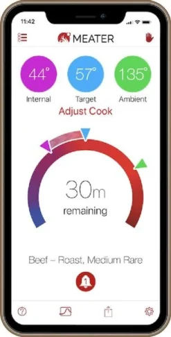 De MEATER is verbonden met de MEATER app waardoor het bakken en grillen van gerechten een gemakkelijk klusje wordt. De app is gratis te downloaden in de Appstore van iOS en Playstore van Android. In de MEATER app kun je gemakkelijk het gerecht kiezen wat je wilt bereiden en of je het rare, medium of well done gebakken wilt hebben. Door middel van een geavanceerd algoritme bepaald de app de geschatte grilltijd van je gerecht. Verder neemt de app je mee door elke stap van het proces wat zorgt voor een gegarandeerd succes.
