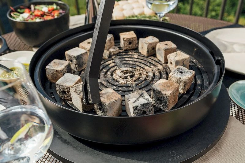 Wij raden aan om gebruik te maken van kokosbriketten. Deze bijzonder efficiënte briketten geven veel hitte af, branden lang (2-3 uur) en zorgen voor minder rookontwikkeling, stankoverlast en afval. Ze zijn compact en 100% duurzaam, gemaakt van het restafval van kokosnoten. In combinatie met de OFYR Quick Starter is de Tabl’O in een mum van tijd klaar voor gebruik.
