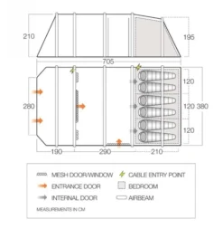 Met het hele gezin op vakantie? Dan mag de Vango Lismore Air 600XL opblaasbare tent daar niet aan ontbreken! De tent is heel gemakkelijk op te zetten en staat binnen 12 minuten stevig op zijn plek! De pomp wordt ook meteen meegeleverd. Handig! Het Nightfall polyester zorgt ervoor dat de slaapkamers ‘s ochtends minder licht doorlaten, zo wordt je slaapritme niet beïnvloed door het vroege ochtendlicht. De afmetingen van de tent zijn 705 x 380 x 210 cm en met een gewicht van 29 kg is de Lismore Air 600XL niet geschikt voor trektochten. Hoe dan ook, dat wordt maximaal genieten tijdens je kampeeravontuur, zet ‘m op hé!