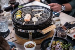 Deze ronde barbecue van YAKINIKU heeft een RVS-rooster en is alleen buiten te gebruiken met houtskool van Binchotan of zelf-ontbrandende briketten. De Binchotan houtskool is het zwarte goud van Japan, omdat deze kolen een extreem hoge temperatuur bereiken. Zo behalen de White Maitiew kolen maar liefst een temperatuur van 1000 tot 1200 graden! Met deze Shichirin barbecue haal je de complete Japanse keuken in je tuin.